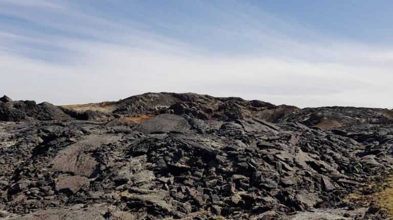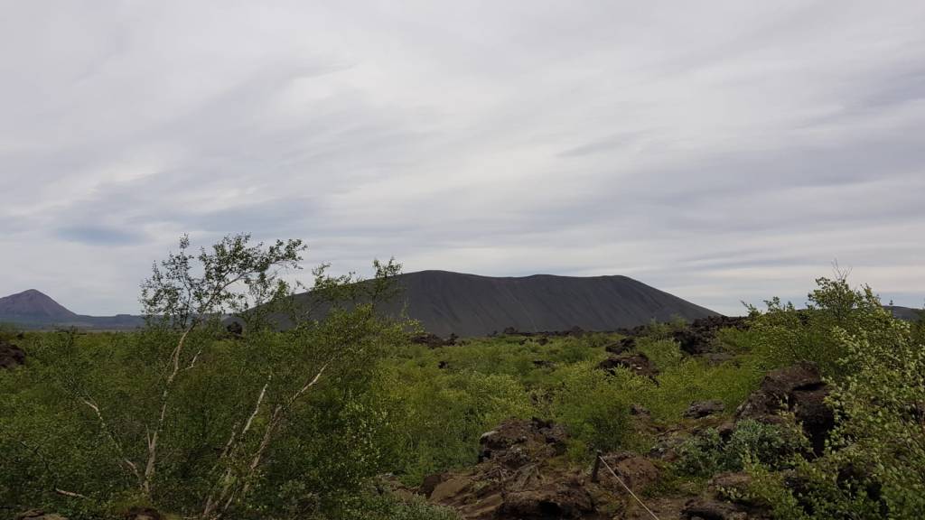 Majestätisch erhebt sich der Hverfjall-Krater am Ostufer des Mývatns. Der Tuffring gehört ebenfalls zum Vulkansystem der Krafla. Er bildete sich vor etwa 2500 Jahren bei einer gewaltigen Wasserdampfexplosion, die ausgelöst wurden, als heißes Magma auf das Grundwasser traf. Die Lava am Hverfjall ist durch Wasserdampf glasig erstarrt und setzte sich am Rande einer gigantischen Wasserdampfsäule ab. Der so gebildete Ring hat einen Durchmesser von einem Kilometer eine Höhe von bis zu 150 Metern. Vom Parkplatz führt ein Weg hinauf auf dem Kraterrand von wo aus man selbigen in etwa vier Kilometern umrunden kann. Wir lassen den Tuffring Hverfjall, links liegen, da wir gesammelt gerade keine Lust auf den 452 Meter hohen Aufstieg haben, und jetzt kommt der starke Wind ins Spiel der bliess soo fest das wir keine Lust hatten die ganze Zeit Steinchen ins Gesicht zu kriegen. Darum fahren direkt weiter zu der Felsspalte Grjótagjá.