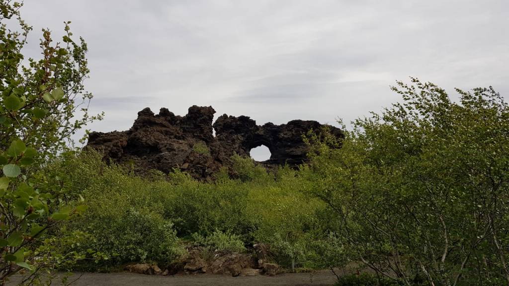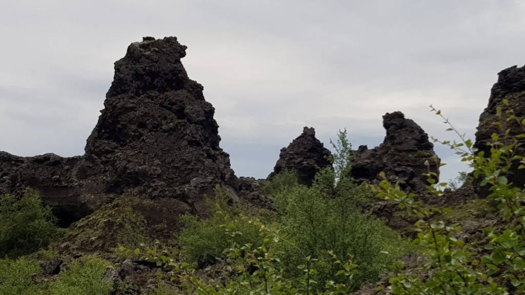 Wenn man sich an dem See Mývatn vorbei fahrt, kommt man an dem Lavafeld Dimmuborgir vorbei, was so viel bedeutet wie dunkle Städte oder dunkle Burgen. Die bizarren Steinformationen erinnern tatsächlich ein wenig an verfallene Ruinen von Burgen und Türmen. Die Isänder glauben, das in den Ruinen zahlreiche Elfen und Trollen hausen. Ein Netz aus Spazier- und Wanderwegen führt durch das Gelände. Je nach Lust und Laune kann man von 30 Minuten bis zu drei Stunden durch die spektakuläre Felslandschaft wandern und seiner Fantasie freien Lauf lassen.