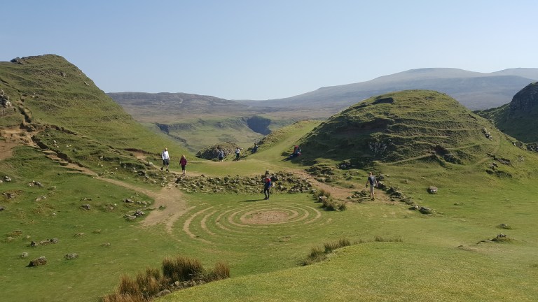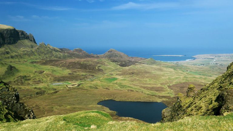 Für viele der schönste Ausblick auf Skye. Ein schönes Fleckchen auf Skye. Direkt am Parkplatz gelegen, man muss nicht weit laufen, man kann links oder rechts vom Parkplatz aus hochgehen, um eine tolle Aussicht auf die Landschaft und einige Seen zu erhaschen. Tolle Fotomotive. Doch auch für kleine leichte Wanderungen ein idealer Ausgangspunkt. Der Quiraing entstand als ein Teil des Berges absank. Ein Tal bildete sich in dem festere Felsen kurzerhand stehen geblieben sind. Eine lange Abrisskante gesäumt von markanten Felsformationen wie z.B. die „Needle“ blieben zurück.
