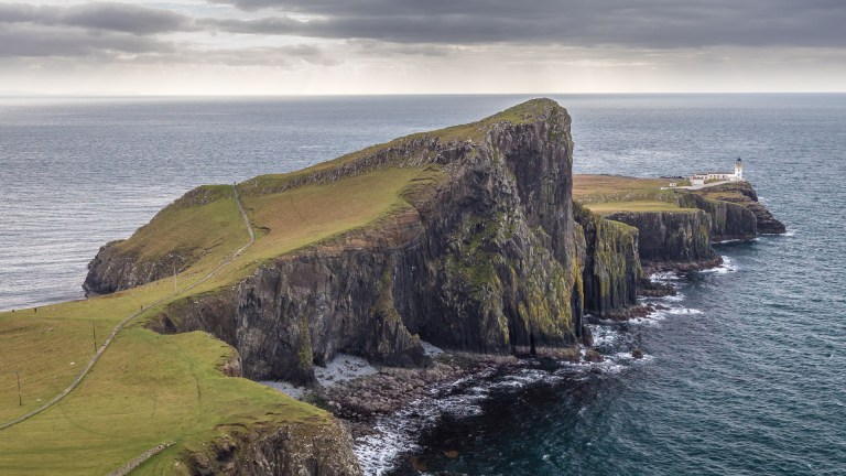 Eine Landzunge mit steil abfallenden Klippen streckt sich am westlichsten Ende der Isle of Skye ins Meer hinein. Die Form dieser Landzunge ist einmalig. Wie eine Sprungschanze erhebt sich der erste Teil des Neist Point zunächst, um dann in einem Plateau dahinter auszuschwingen. Ganz am Ende sitzt einer der für Schottland so typischen Leuchttürme. Den Neist Point kann sich der Besucher auf zwei Arten ansehen. Einmal durch einen Spaziergang zum Leuchtturm, zum anderen aber durch einen Abstecher zur Seite. Denn wenn man ein Stück entlang der Steilküste wandert, eröffnet sich der typische Blick auf den Neist Point, wie er auf vielen Bildern zu sehen ist wie auch auf dem oben.